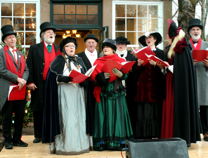 Cantar villancicos. Ejemplo: At Christmastime, we often carol from door to door in our neighborhood. (En Navidad, solemos cantar villancicos de puerta en puerta en nuestro barrio.)
